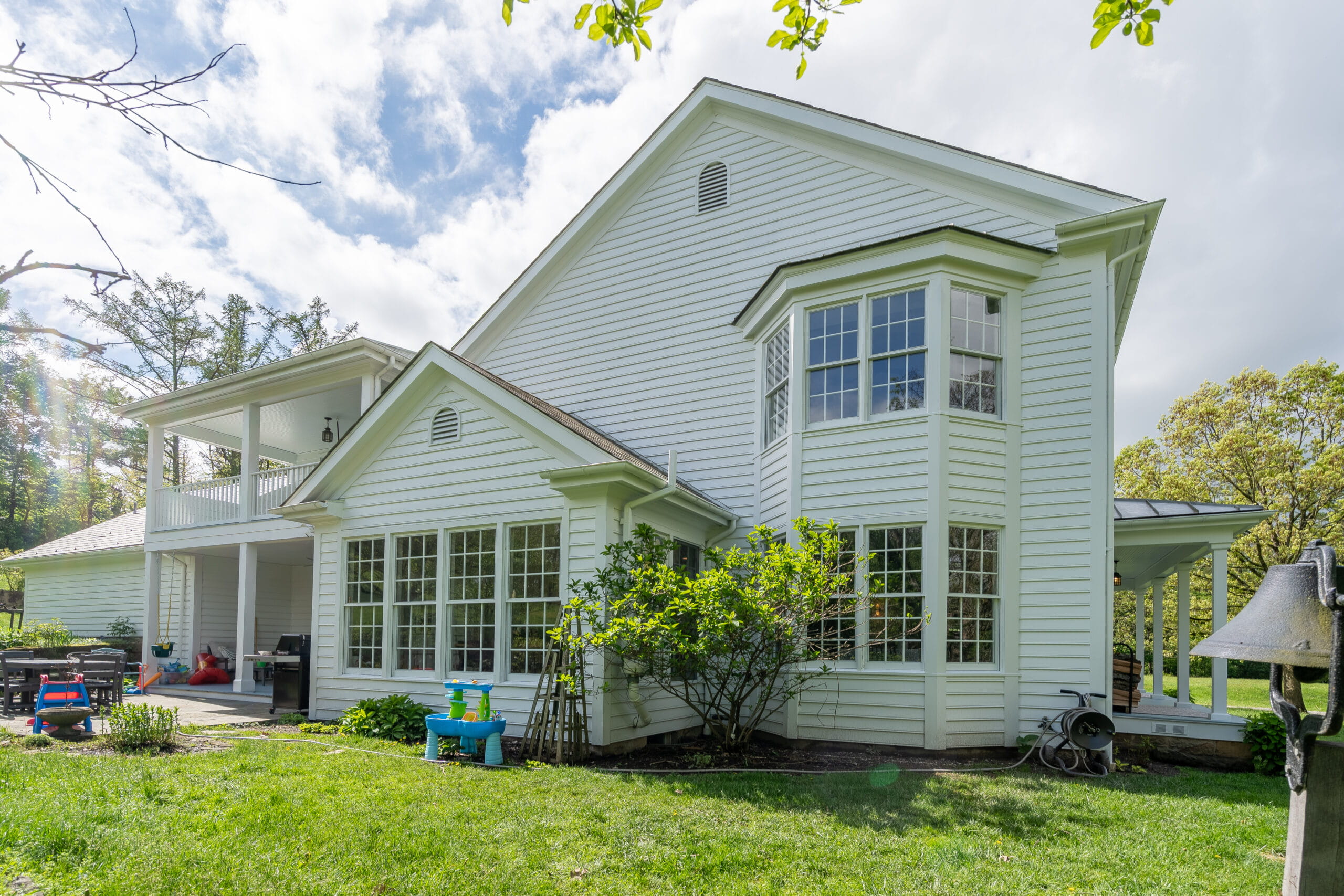 - Exterior Painting – Full Coverage: Applied Sherwin-Williams Emerald Rain-Refresh in Pure White to all siding, trim, porch columns, doors, and railings using brush, roller, and spray methods where appropriate.