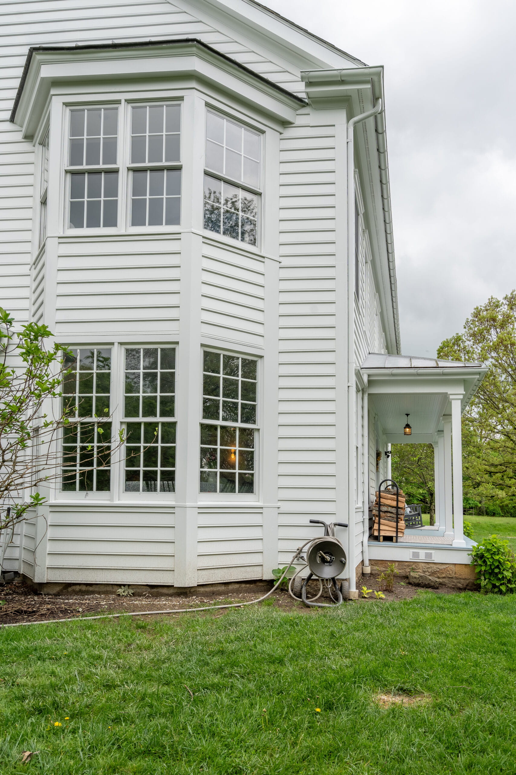 The homeowner, Sam, reached out to Four Pillars Paint with a clear expectation: high-caliber work for a high-value property. The scope included repairing rotten siding, porch columns, railings, and floorboards, plus a full repaint of all exterior siding, trim, doors, and porches. This wasn’t just cosmetic—it was about long-term protection and restoring pride of ownership.