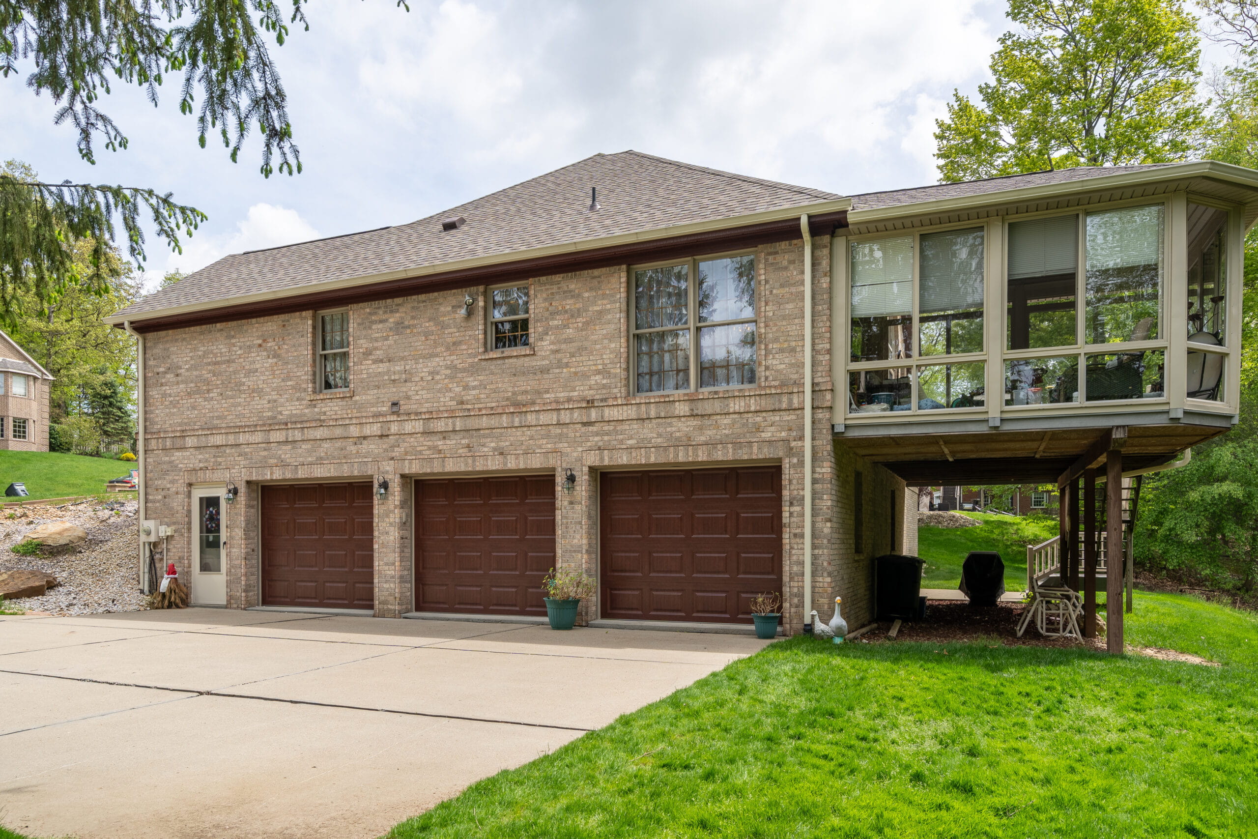 This bold exterior project took place in the scenic suburb of Franklin Park, PA, nestled in a quiet cul-de-sac in the North Hills. The homeowner, Mary Ann, reached out to Four Pillars Paint for her very first home repaint—an important milestone that came with both excitement and hesitation.