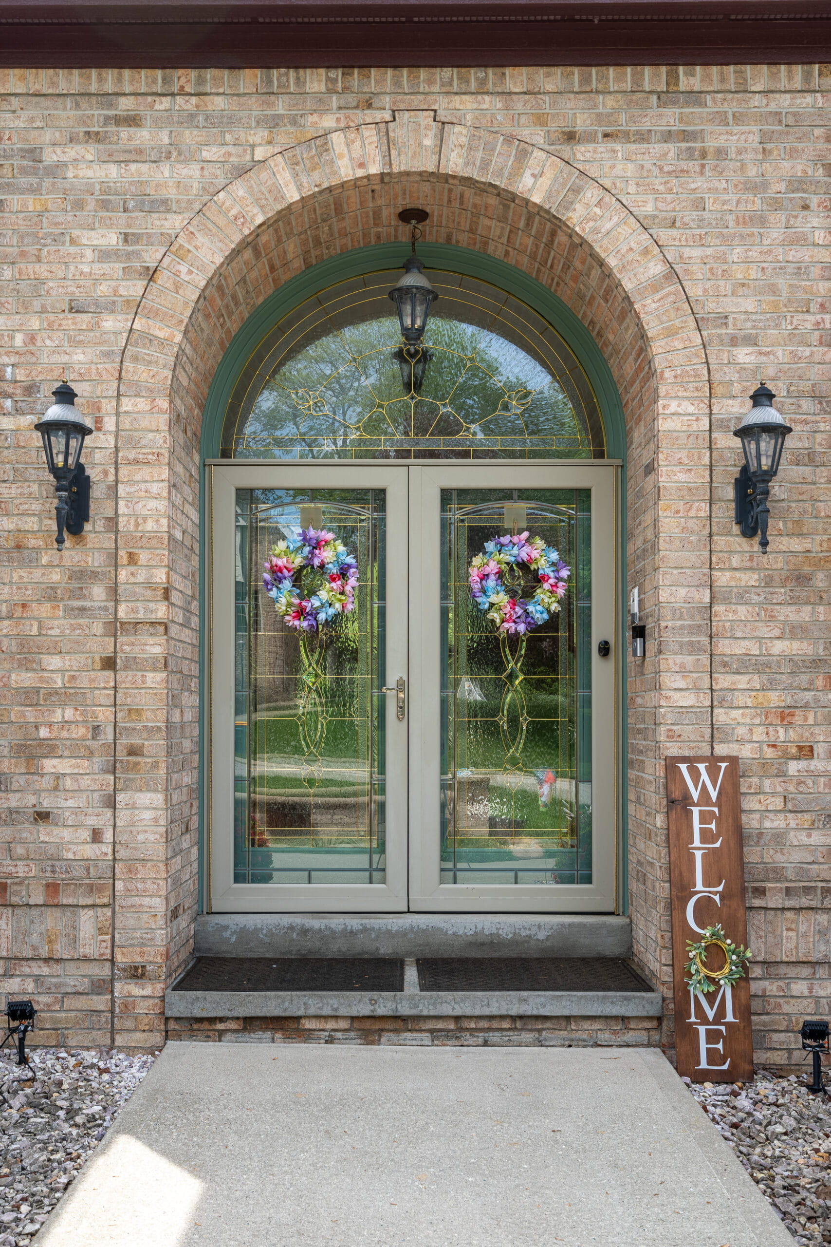 The finished result was a dramatic and beautiful transformation. The Arresting Auburn trim added warmth and character, tying in perfectly with the cherry garage doors. The Blue Spruce stain on the front door frame introduced just enough contrast for a tasteful, high-end look without overwhelming the entryway.